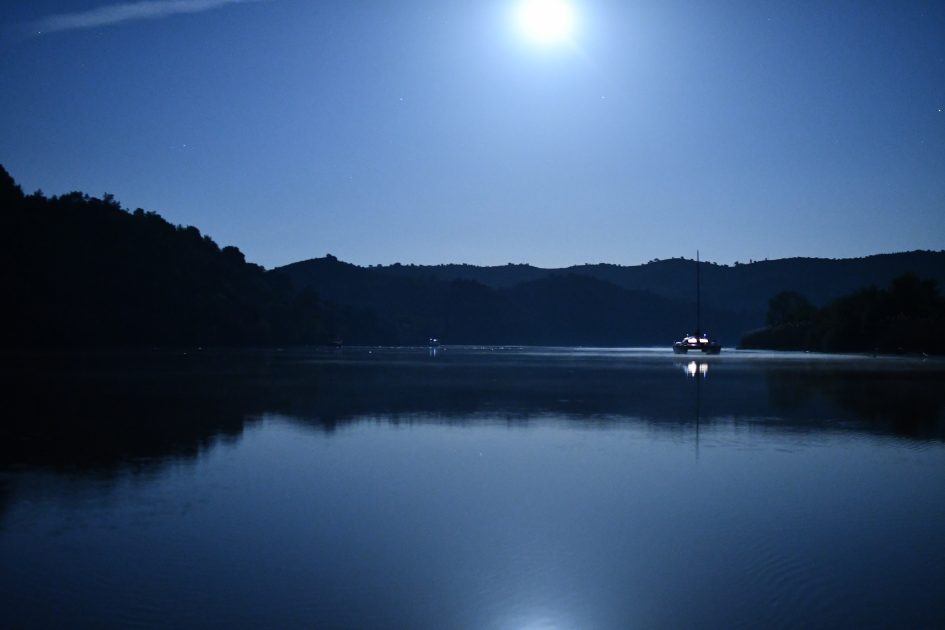 nuit sur le Rio tous les voiliers sont sagement alignés par le courant des marées.