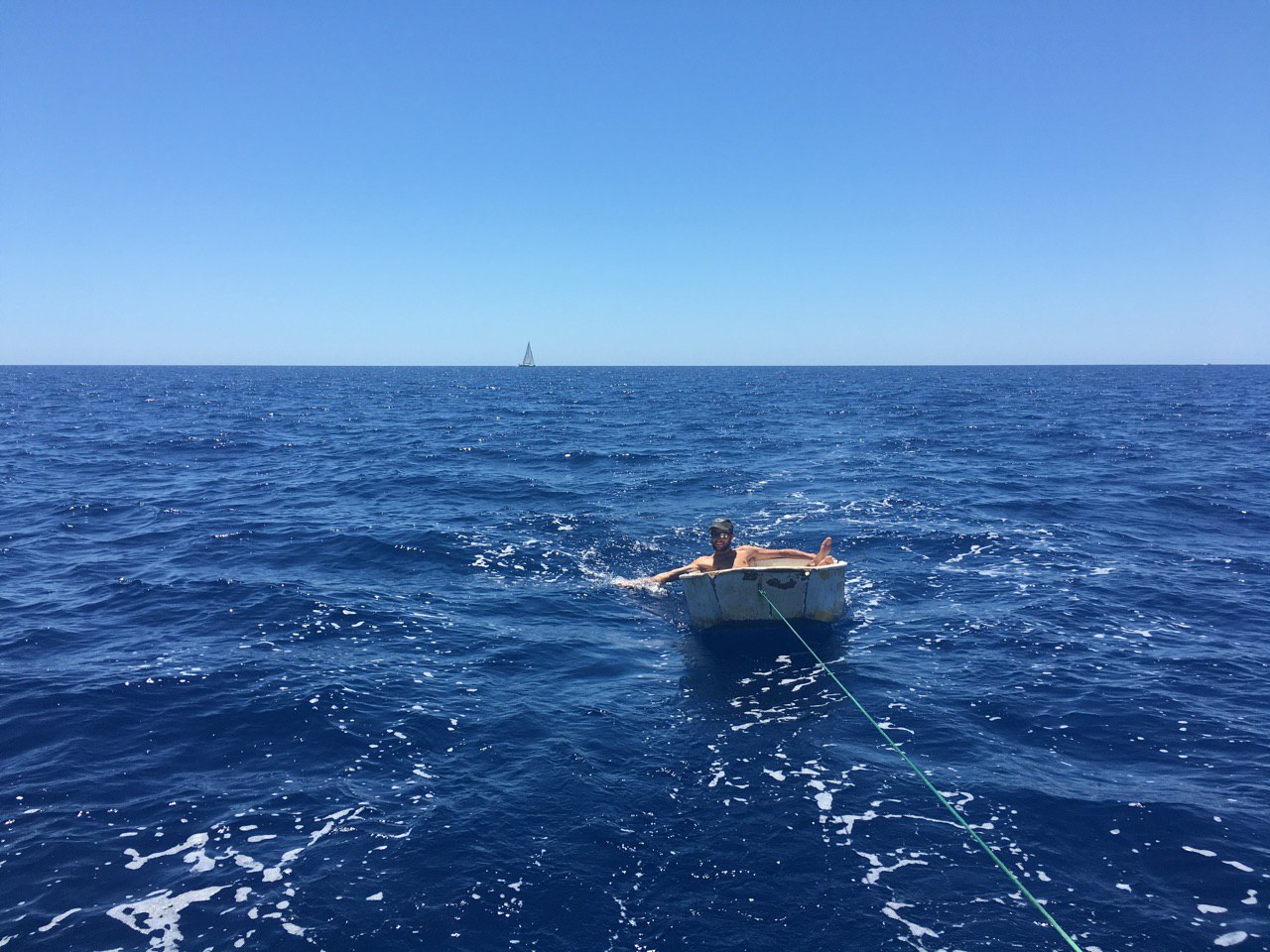 Le 17 Juin,  Camille et moi sommes de retour à bord, les touristes ne sont pas nombreux sur l’île surtout pour un mois de Juin… Nous faisons rapidement le plein d’eau et de nourriture et partons profiter du vent stable et de la mer sans houle, spi tangonné Gv filée contre les barres de flèches. Geneviève, ramenée dans nos valises, notre nouveau pilote automatique prend du service sur Piana aprés une brillante carrière sur Nuage à Concarneau. Elle nous conduit à merveille, quel plaisir de regarder le bateau avancer tout seul sans devoir tenir la barre. Je cherche la meilleure place pour contempler ce phénomène surnaturel. Après un mois de navigation je m’étonne toujours de découvrir le sillage qui se dessine tout seul et la trace gps parfaite que nous traçons. Si seulement on avait eu cet outil en septembre dernier …