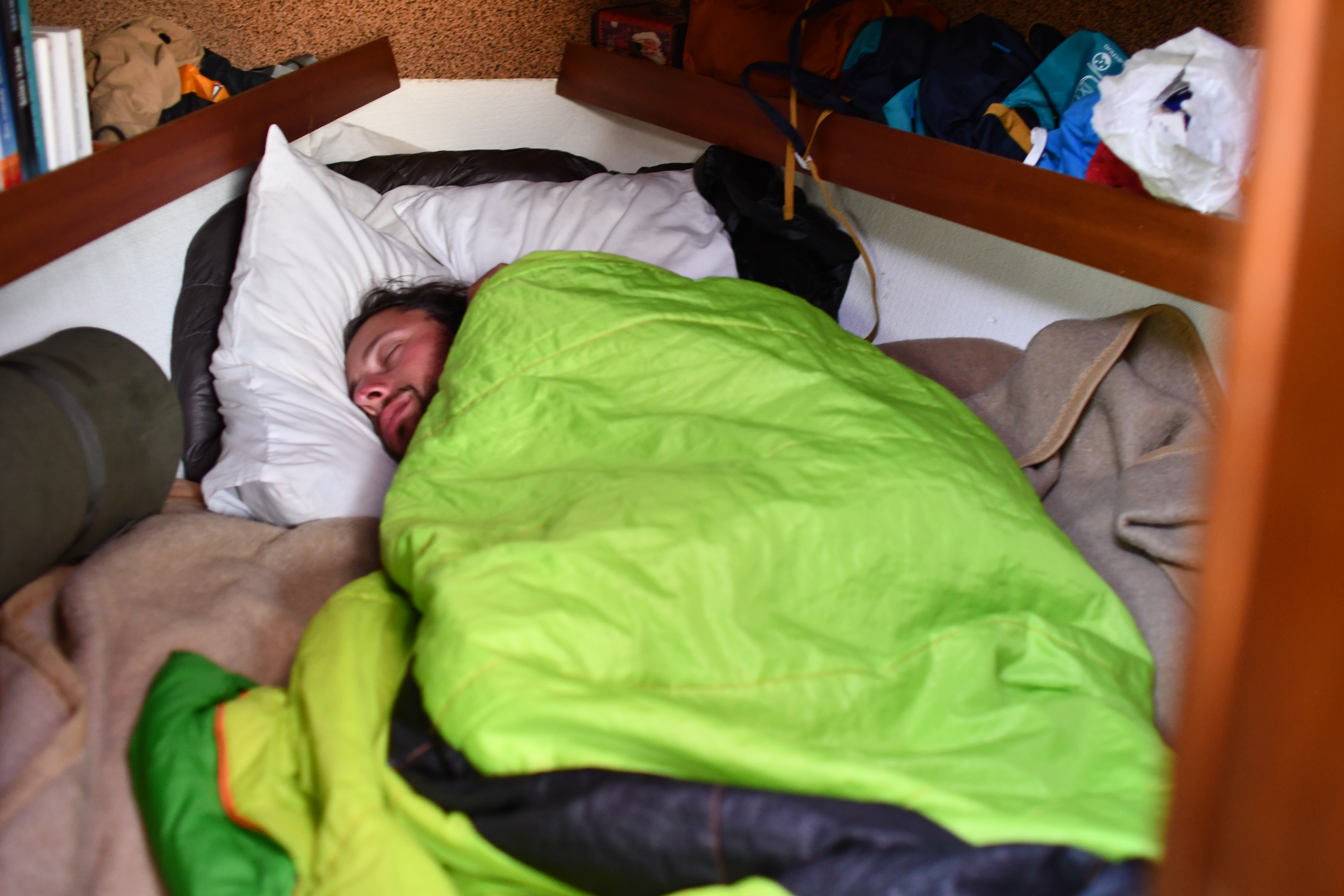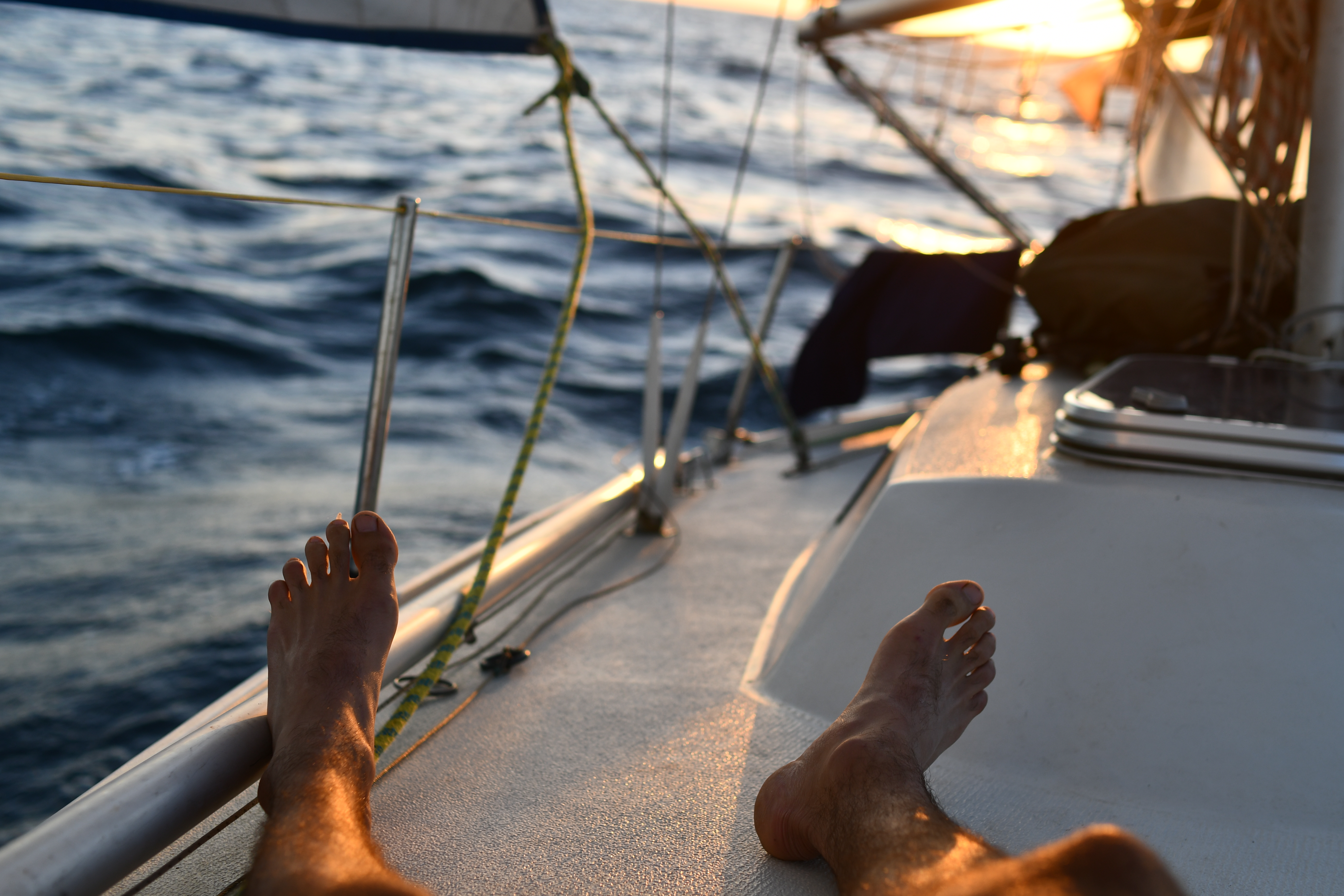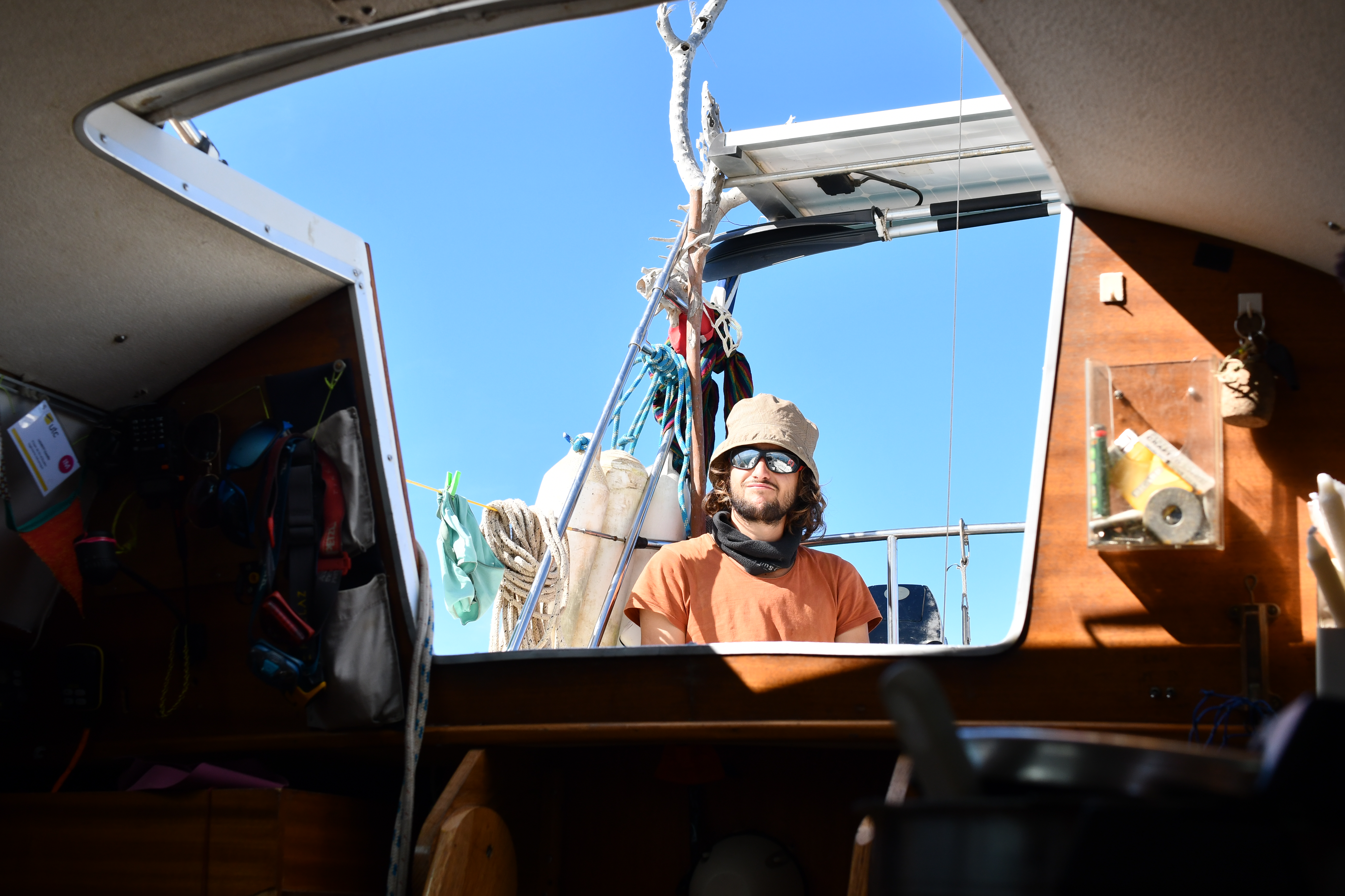 C’est reparti pour un tour, après avoir rassuré Piana nous l’avons laissée seule le 13 Avril en rentrant à Lyon. Presque 6 mois plus tard nous redescendons au Portugal. Aprés quelques semaines de route, un stage de ramassage de patates, un passage chez Aude à Lisbonne, une séance de surf, quelques heures de vol dans les Pyrénées et sur la côte atlantique et un accueil alcoolisé dans la famille éloignée de Maël. Nous sommes enfin de retour à bord avec pour équipage Lucile, Maël (dit le NeUUf) et Maxime. Nous armons efficacement le bateau et procédons aux travaux qui s’imposent. Comme le nouveau vaigrage de la cabine avant. L’ancien ayant décidé, lors du dernier voyage de se transformer en champignonnière…