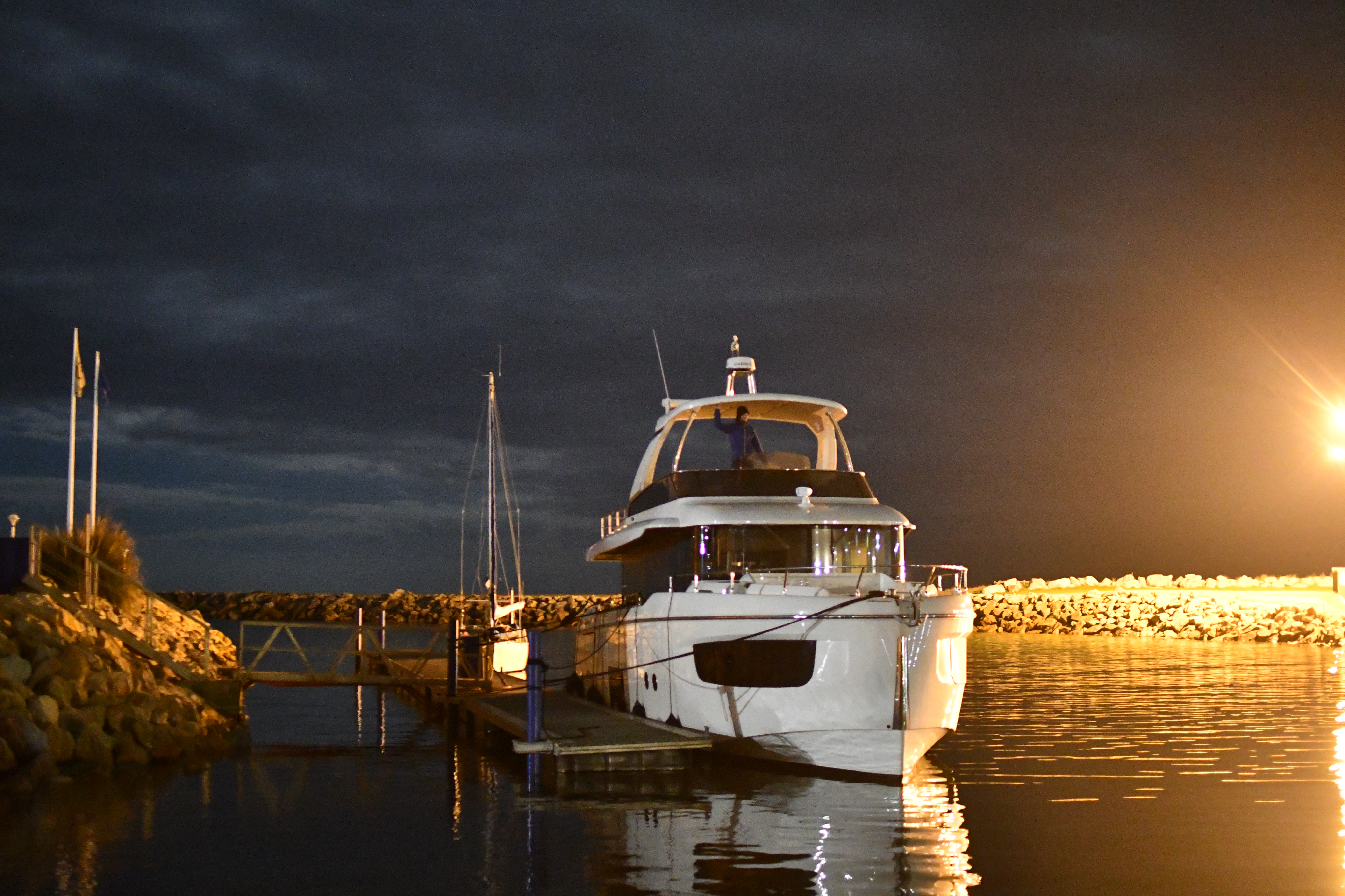 Navigation de nuit avec Morgane et Jérémy venus passer le week-end à bord et me donner un coup de main dans les préparatifs.