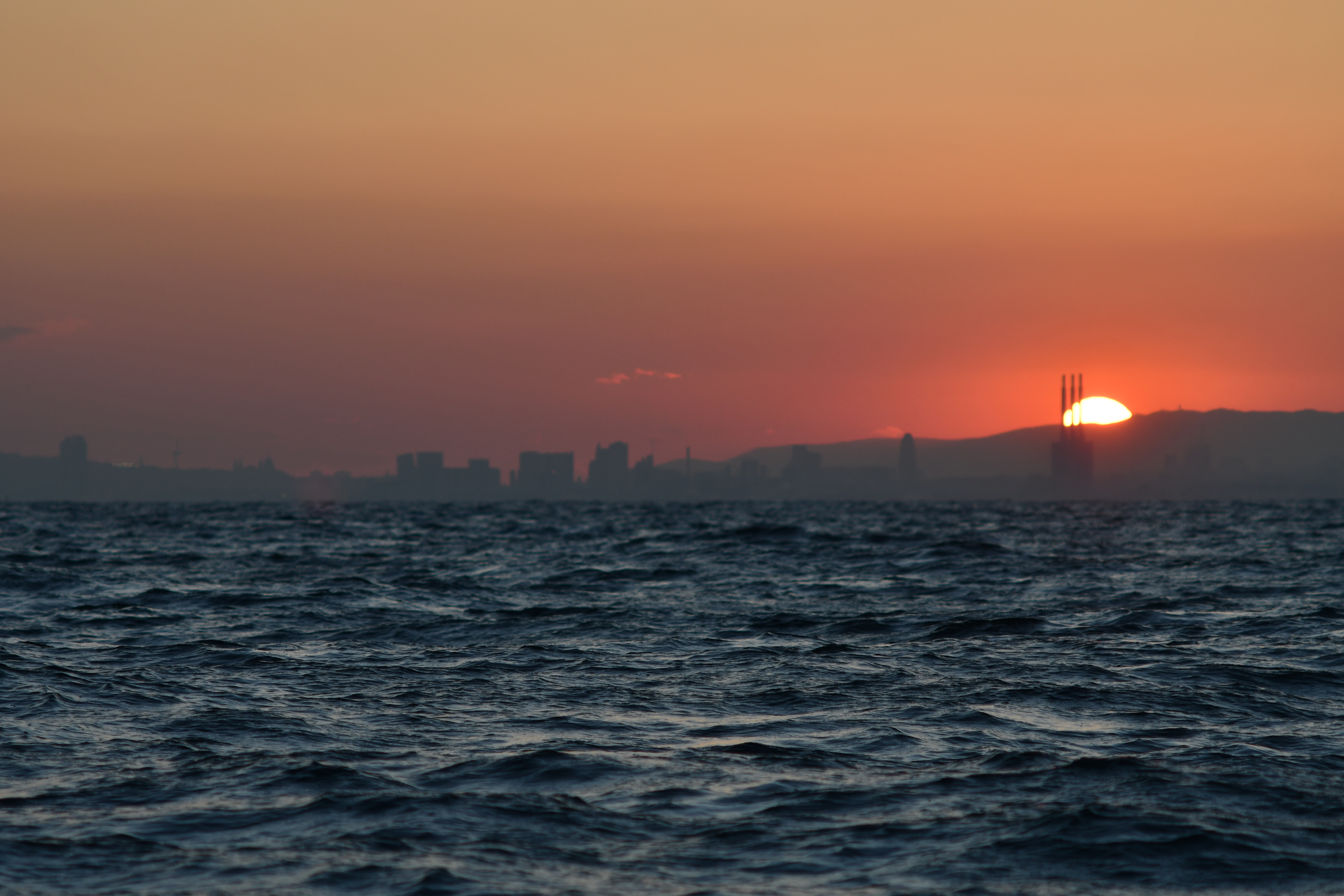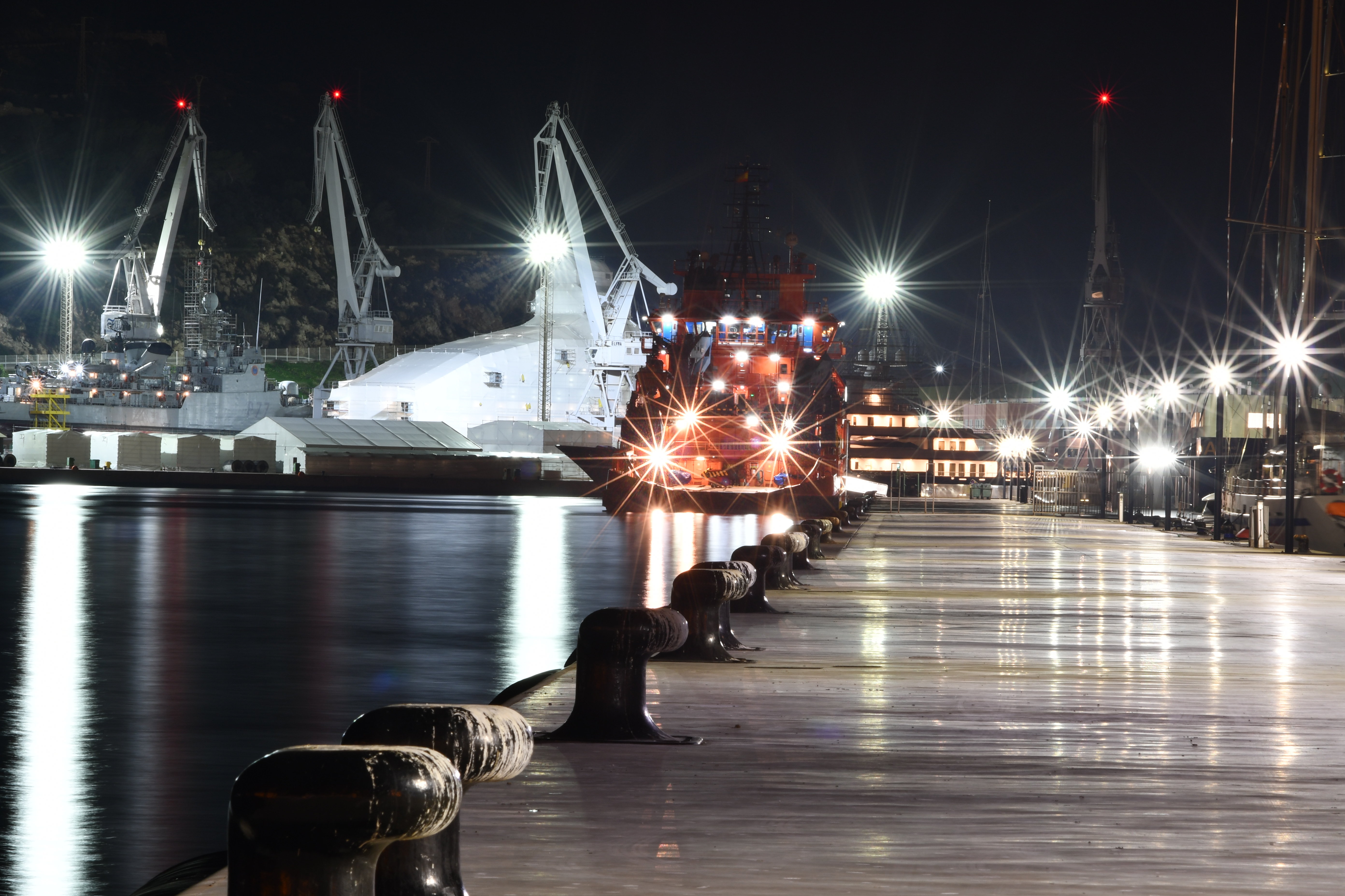Nous sommes en vue de Barcelone, pas de houle, nous arrivons droit sur les grues du port commercial.