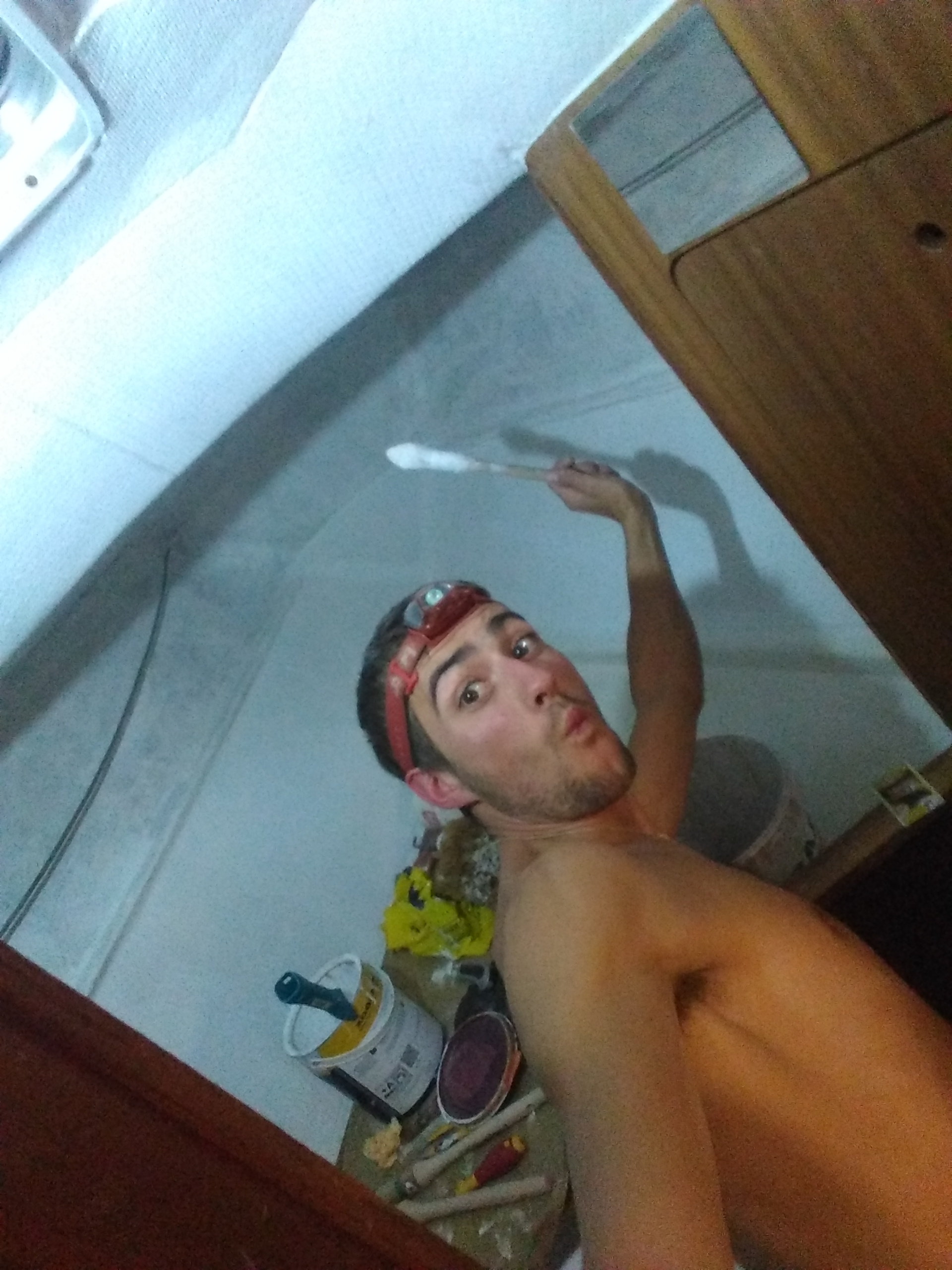 Travaux en tout genres sur Piana, on s’occupe sous la pluie et par force 8. Je fais sécher la peinture avec un petit chauffage électrique gracieusement prêté par