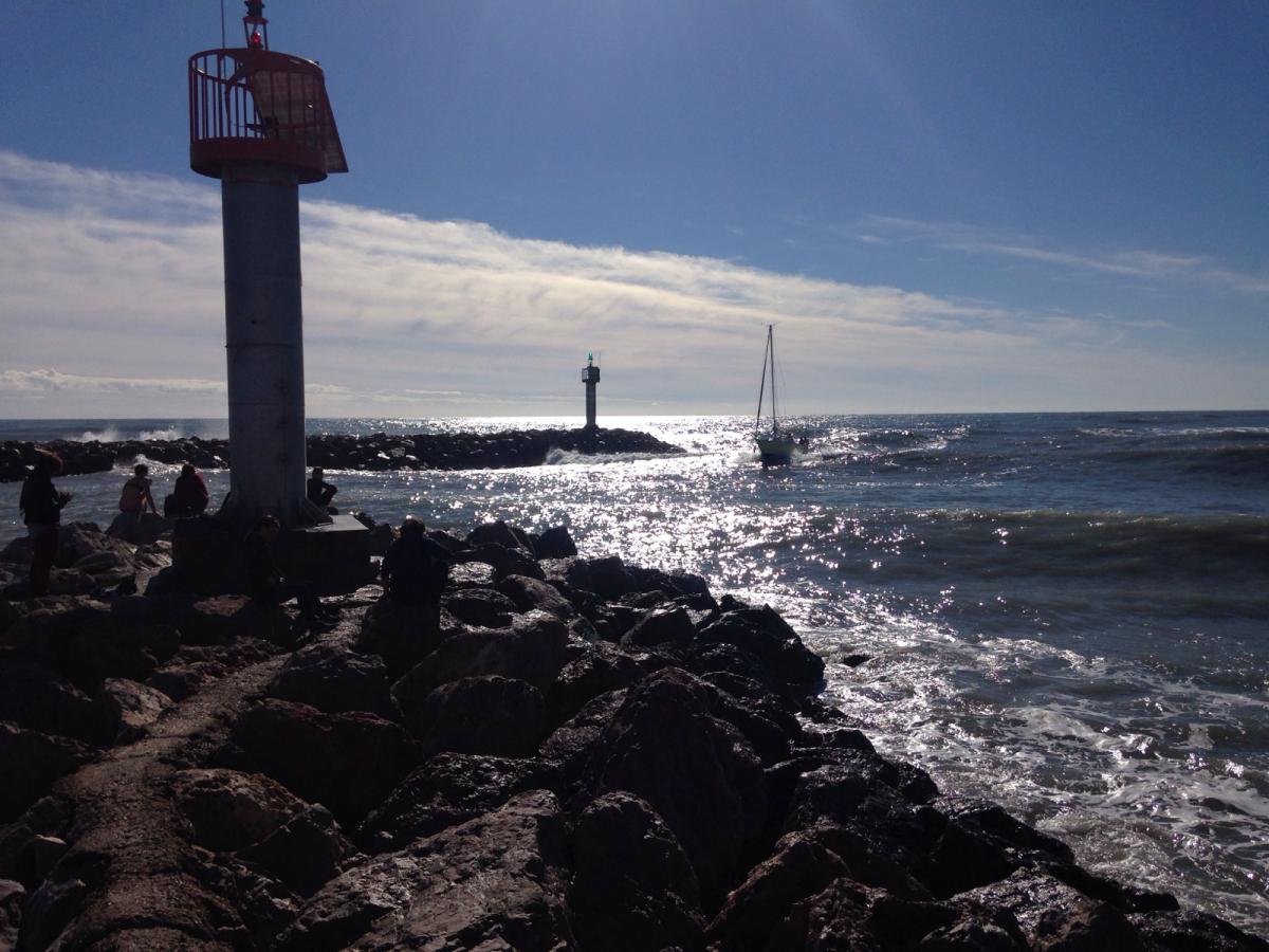 Aprés avoir passé la nuit à port Barcares. Hier, du soleil et très peu de vent. On à pu profiter du soleil à l’ombre du spi !