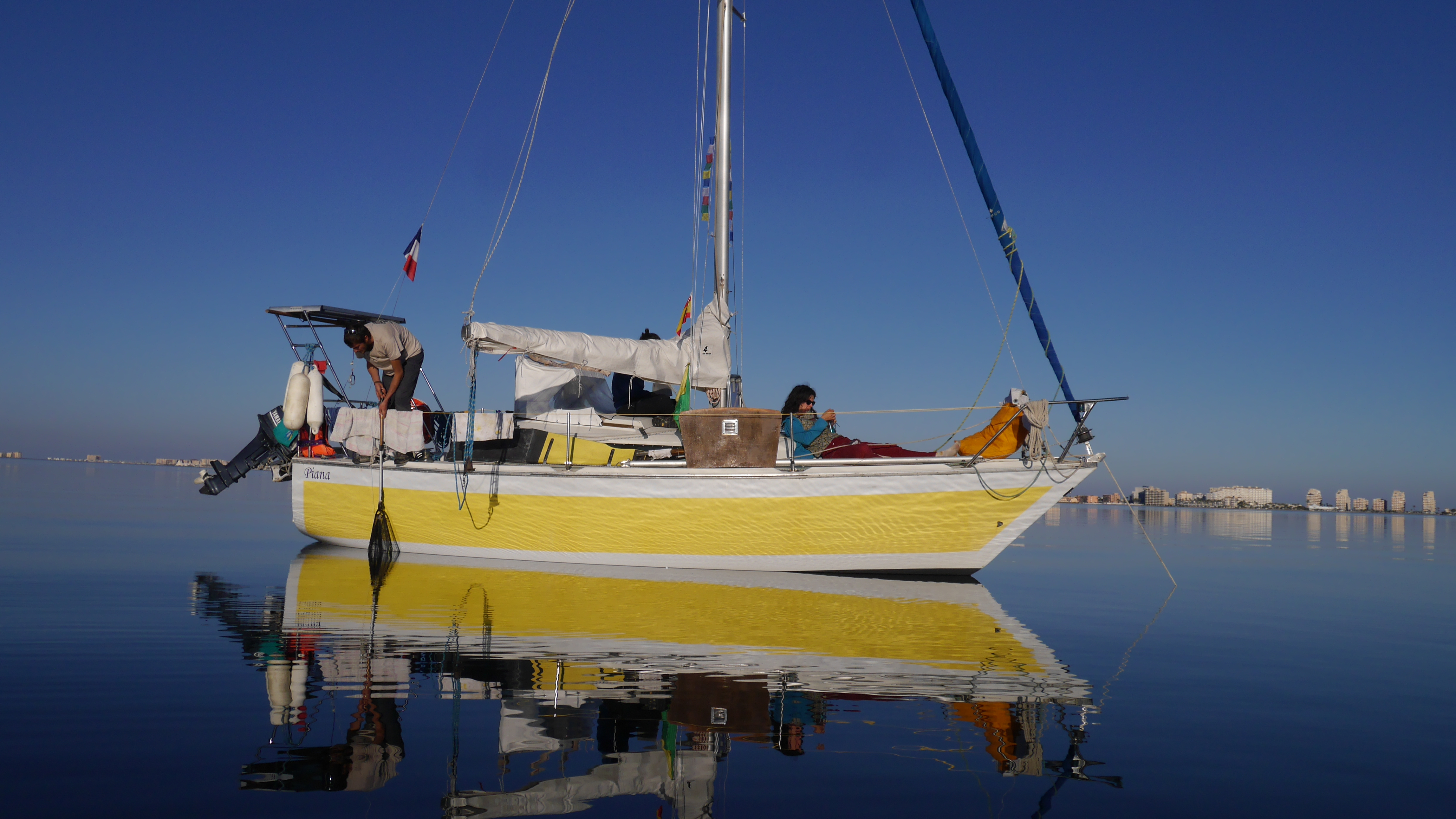 Voilà trois jour que le nouvel équipage s’est fait au doux tangage du Piana. Jusque là tout va bien, les novices se sont bien adaptés et n’ont pas eu a renvoyé le