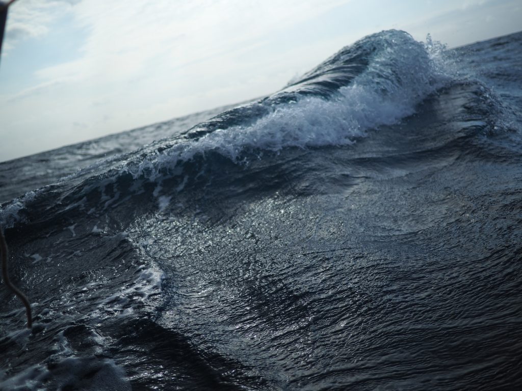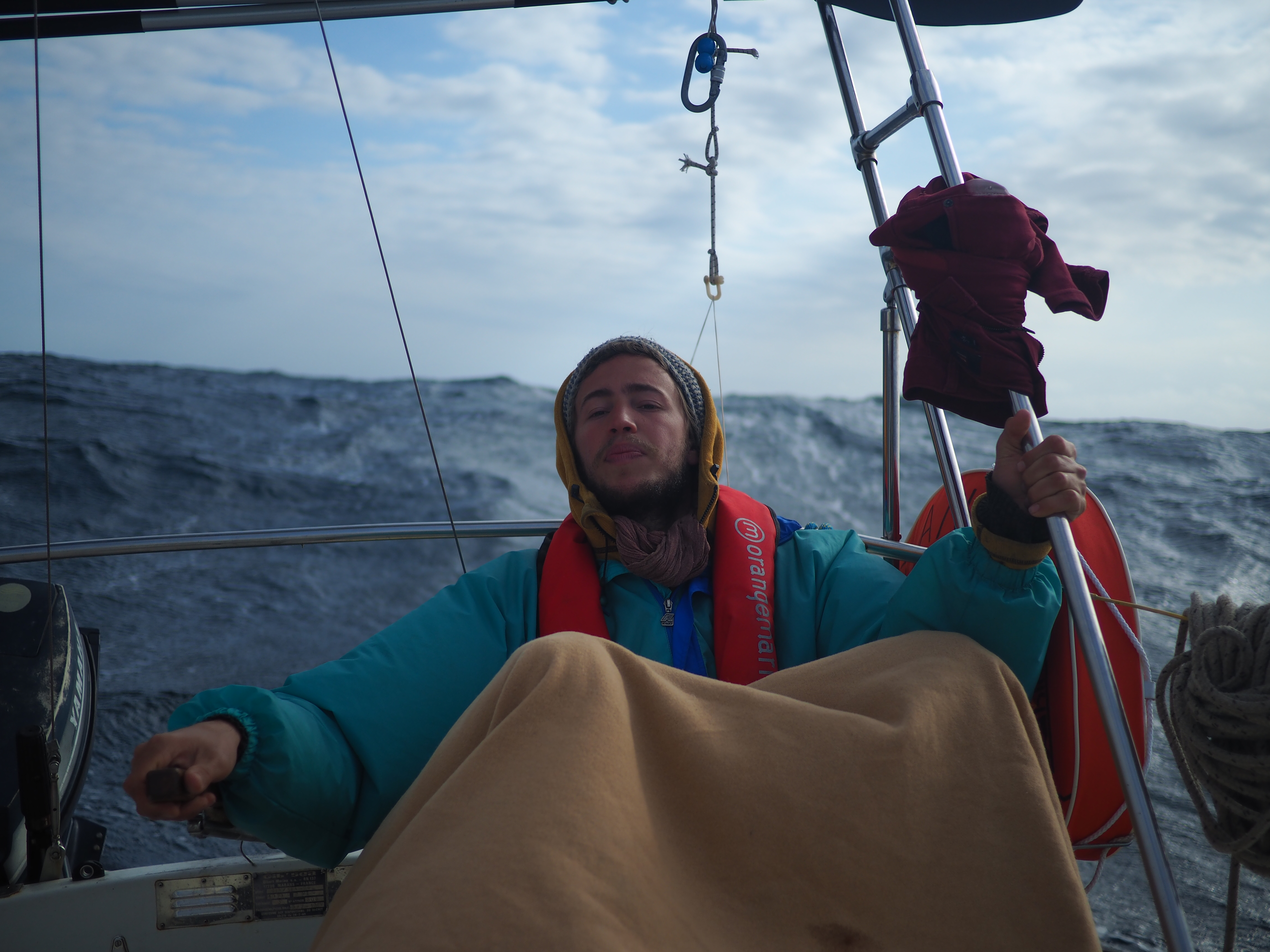 Dés le matin, on expérimente une petite navigation s’accompagnant de rafales à 40 noeuds et une bonne houle. L’occasion de tester notre adresse au découpage
