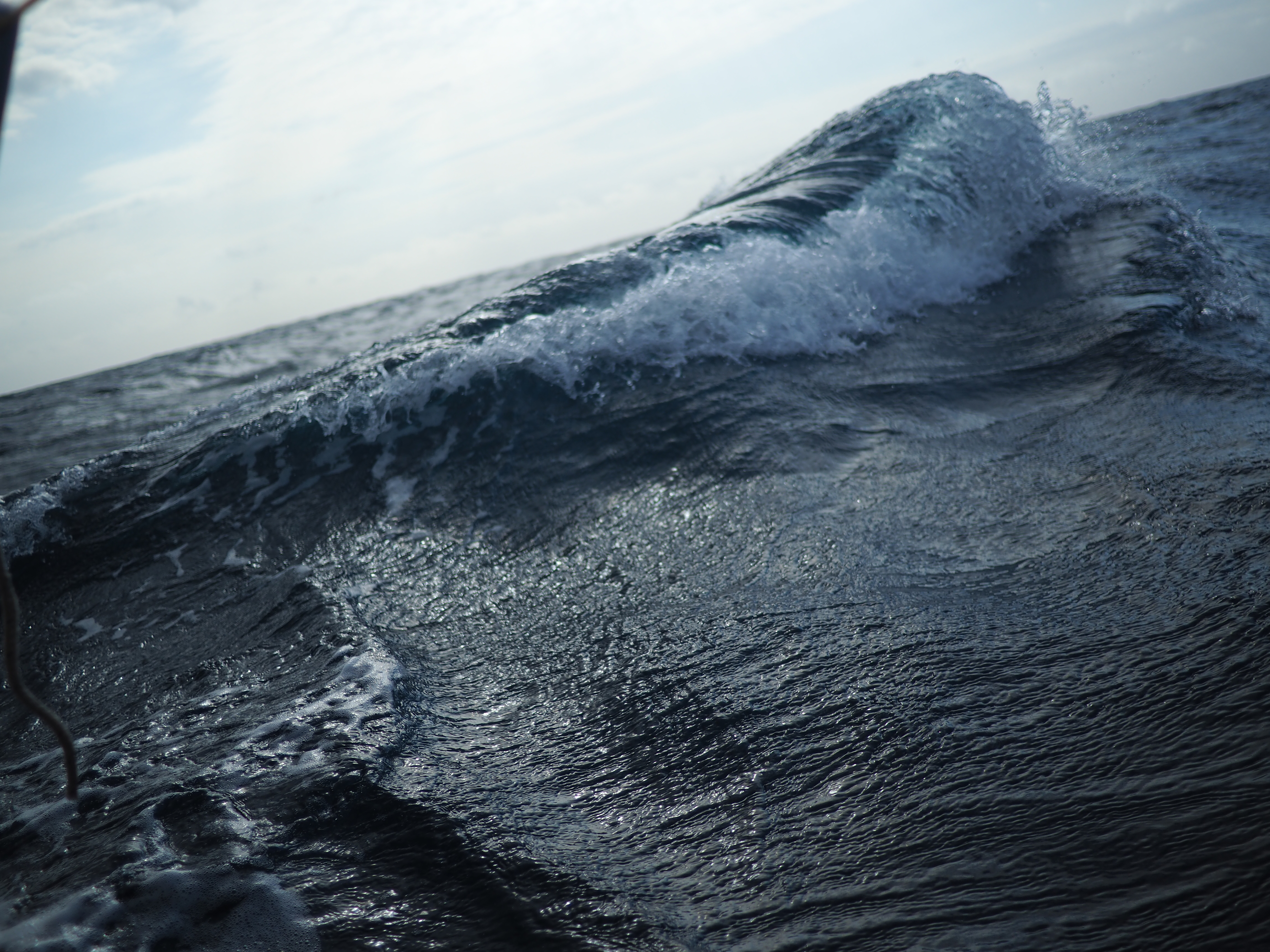 Des bonnes déferlantes nous font écoper avec le cockpit.